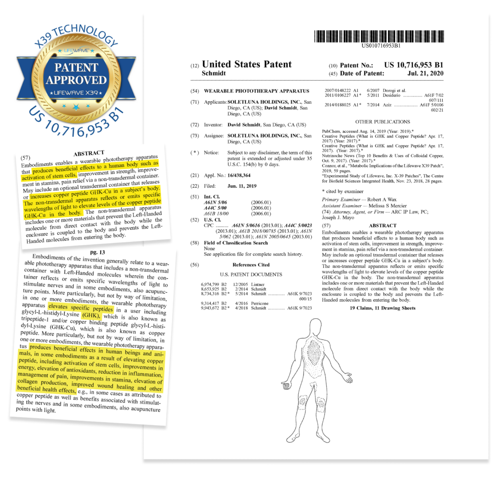 The X39 patch reflects a specific frequency back into our body, elevating GHK-Cu, a copper peptide that activates our cellular activity.